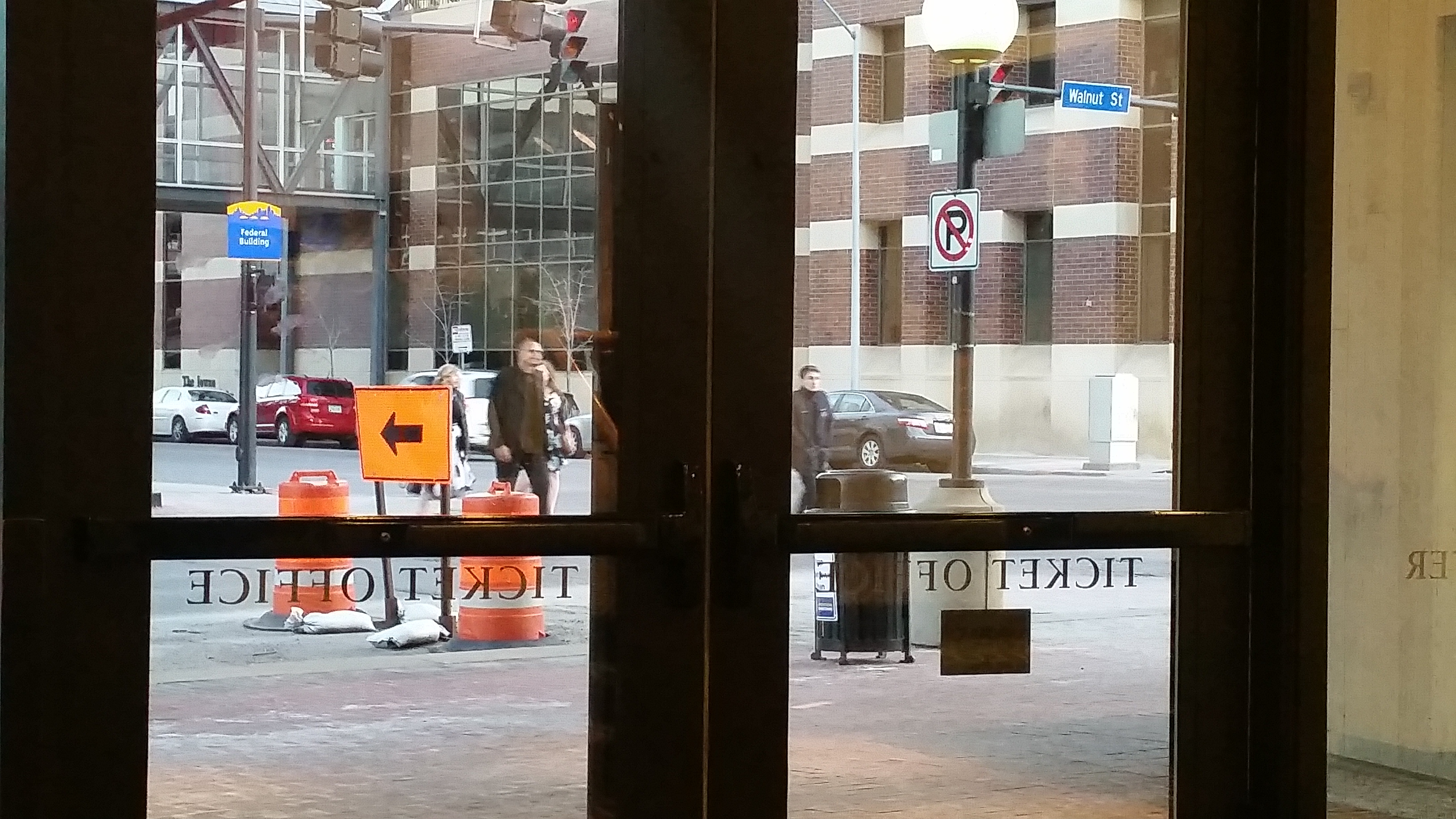 I was a little nervous waiting by myself while Elijah came back from parking the car so I ended up calling him to see where he was at and he wasn’t too far, when he got into view I took a picture of him crossing the street XD Later on when the symphony was over he had me wait there again while he went back to get that car and when he finally picked me up he said that people where getting all kinds of crazy over by the bar area he had to pass when he got our van and on top of that he actually got lost a little and was walking through grassy areas and dirt and such XD He said that I probably would have gotten so freaked out and scared…which he’s right because loud noises, sudden movements and drunk people terrify me to the extreme ^^;
