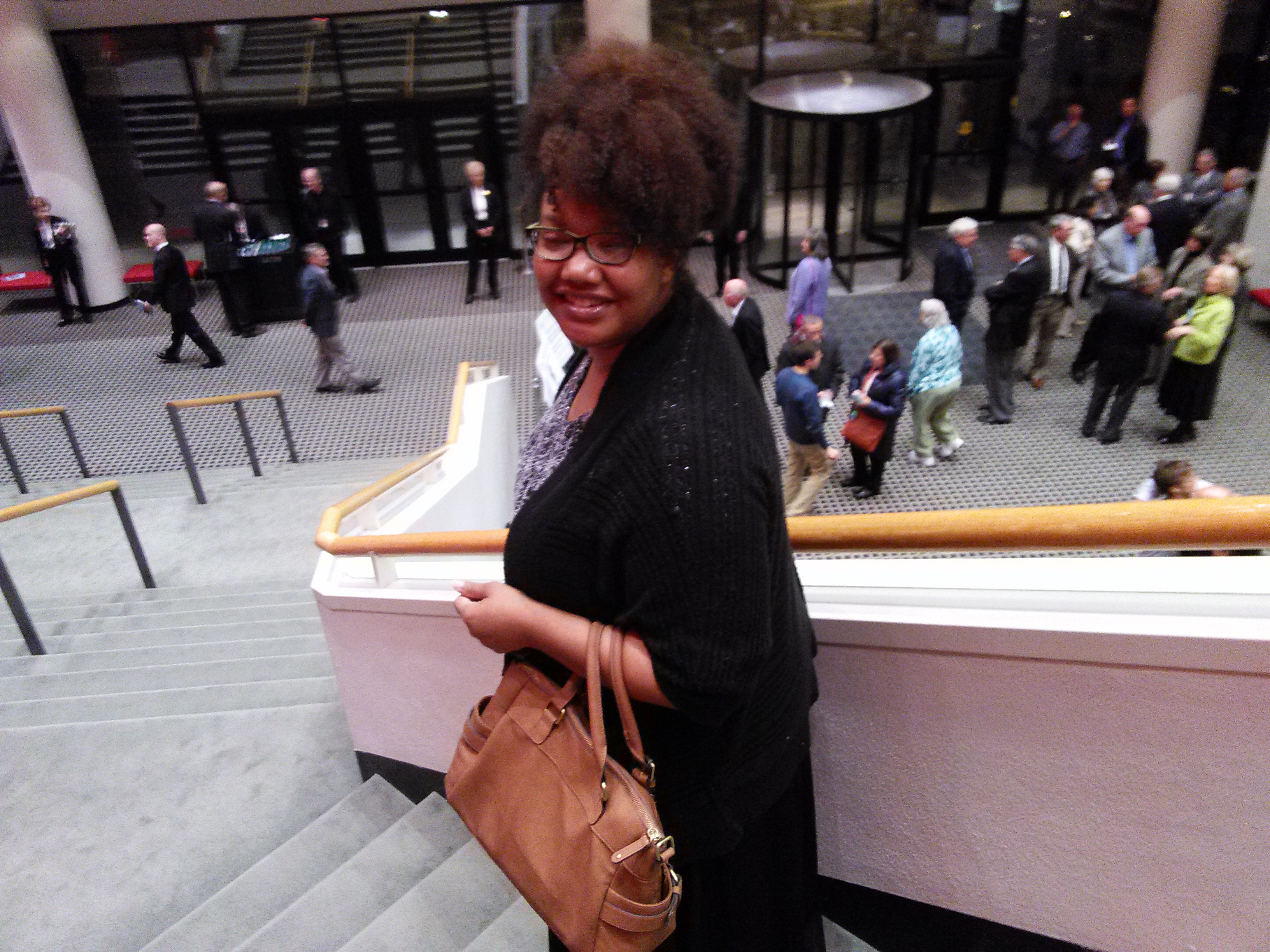 I was actually a little frustrated with my hair because I had a fancy faux updo style in mind but it didn’t turn out the way I wanted so I decided to rock my high puff and some side curls. Since the symphony was downtown and parking their is brutal I had Elijah drop me off upfront so that I didn’t have to walk 5 blocks in my heels ^^; While I was getting out of the car and crossing the street two elderly women were walking beside me and one commented on my hair “How did you get all of that hair?” I wasn’t really sure how to respond to that but living in a town where there aren’t a lot of afro or curly hair styles I’m slowly getting used to the attention that my natural hair brings, so I just smiled brightly at her and told her thank you and laughed it off with them.